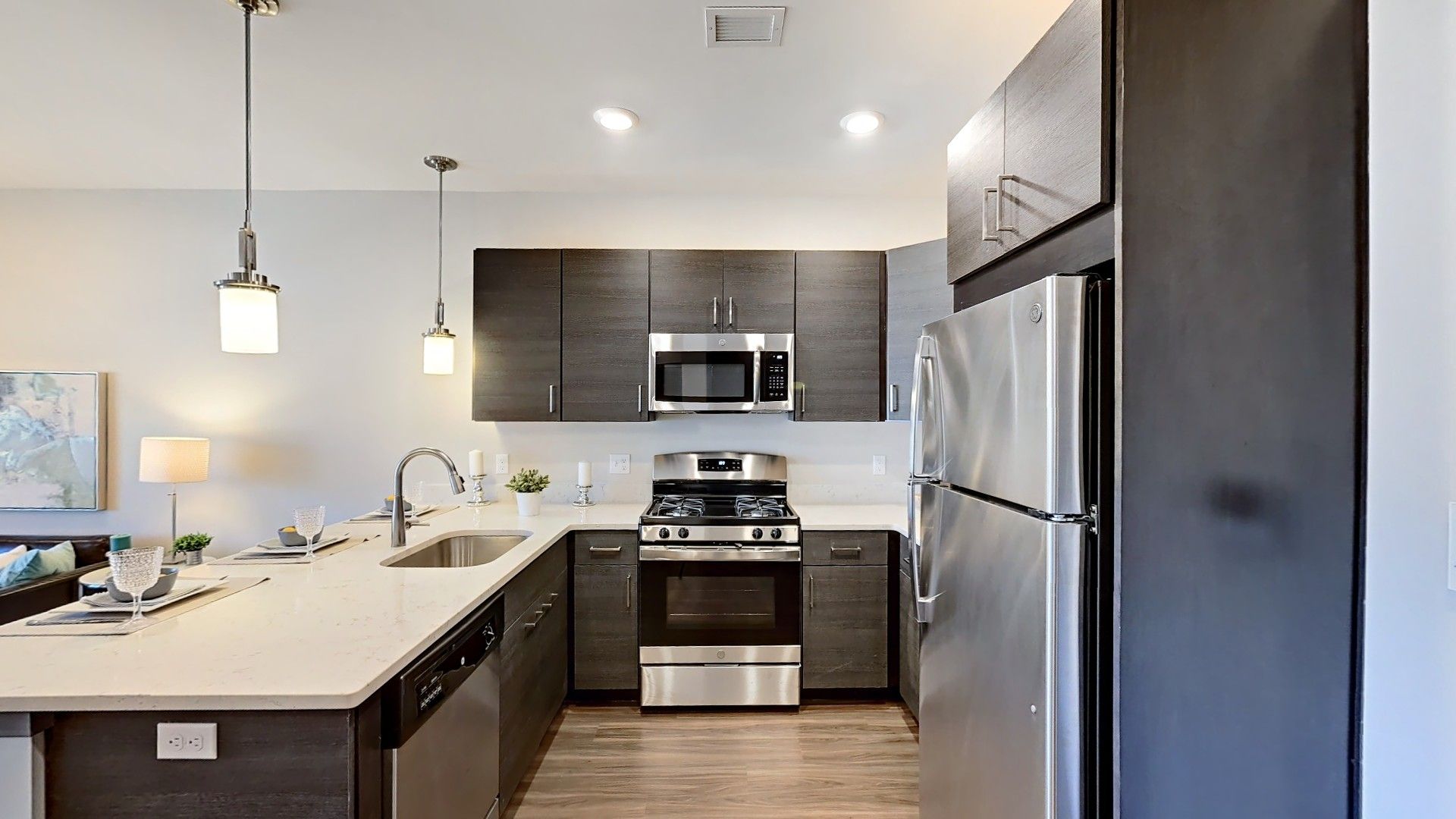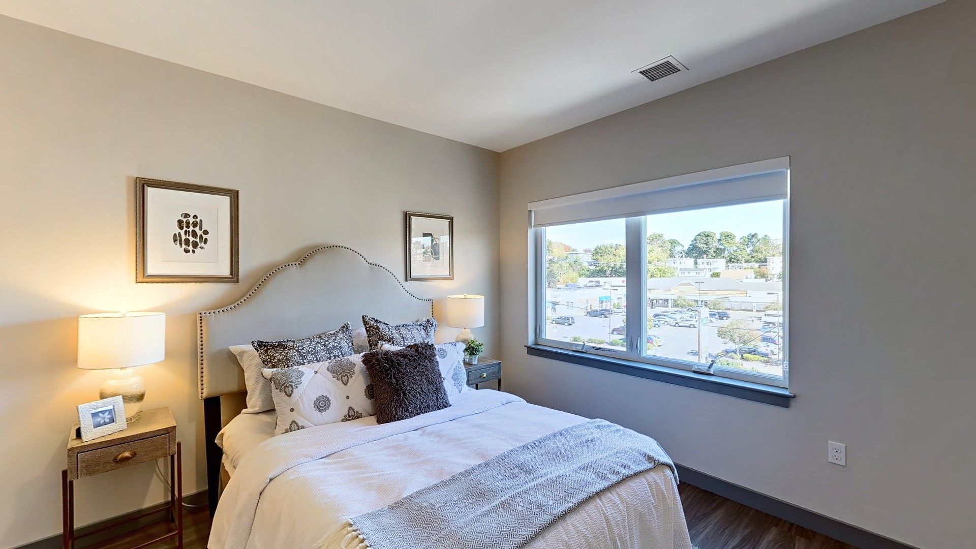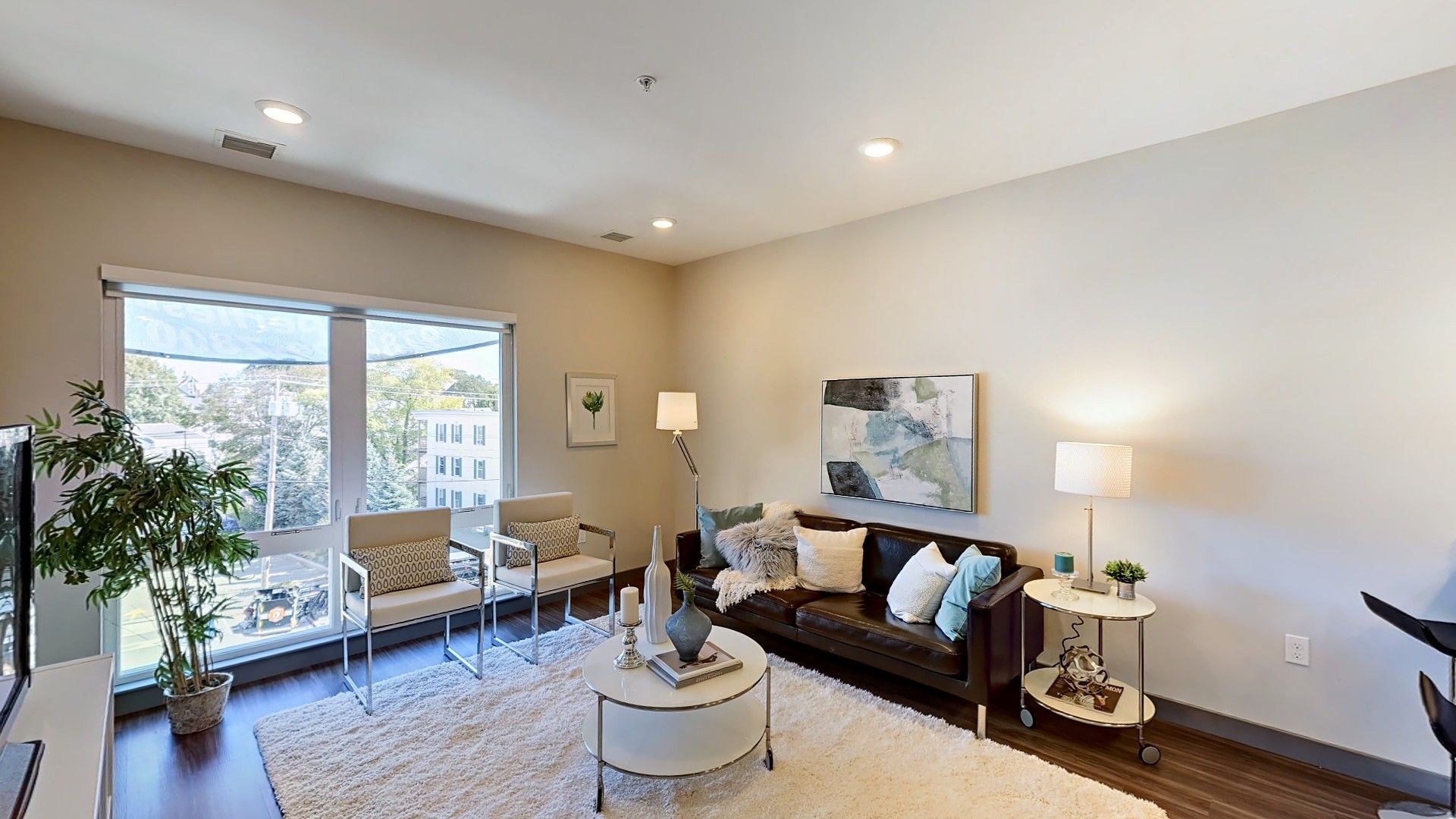 Apartment features include central A/C, luxury plank flooring and custom kitchen with stainless steel appliances. Washer/Dryer in unit, parking and bicycle racks.