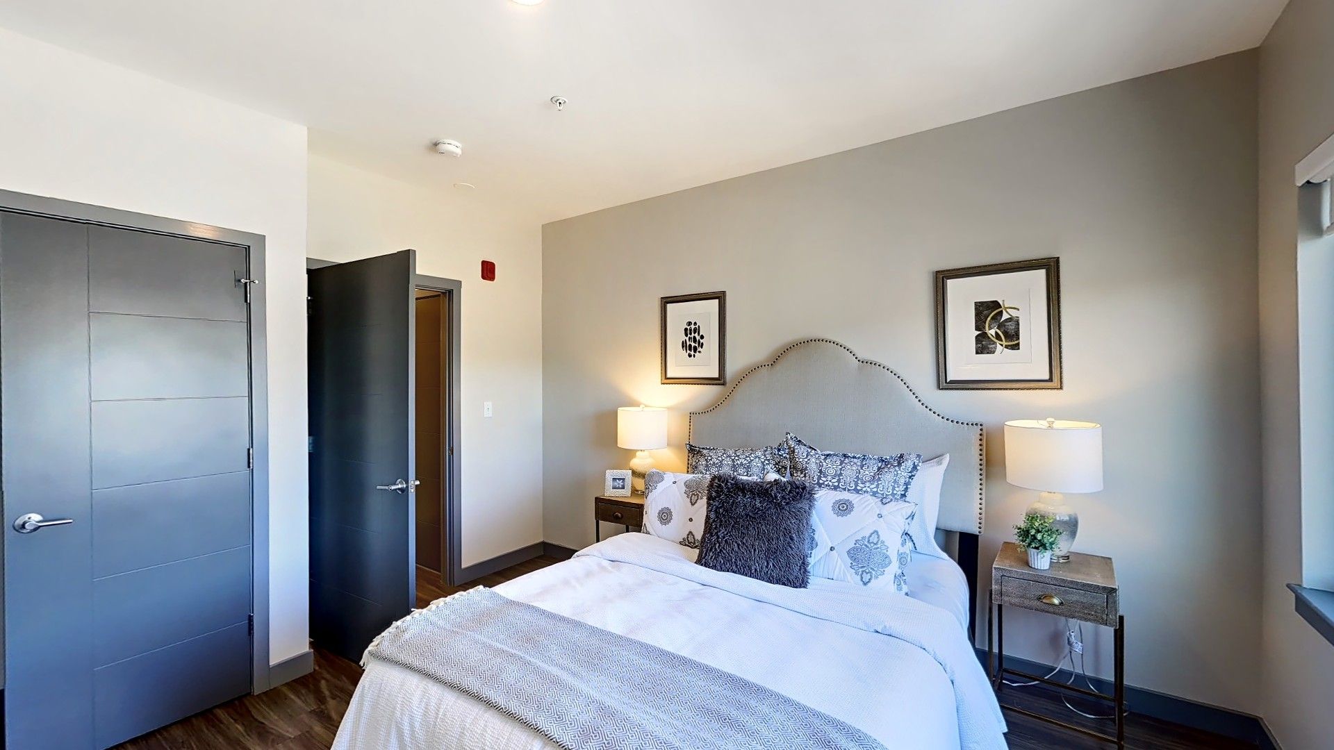 Apartment features include central A/C, luxury plank flooring and custom kitchen with stainless steel appliances. Washer/Dryer in unit, parking and bicycle racks.